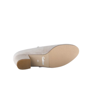 Gabor pumpsen er fremstillet i eksklusivt beige ruskind, som giver et sofistikeret og feminint udtryk. Den neutrale farve passer perfekt til både kjoler, nederdele og bukser, og gør skoen til et sikkert valg i enhver garderobe.
