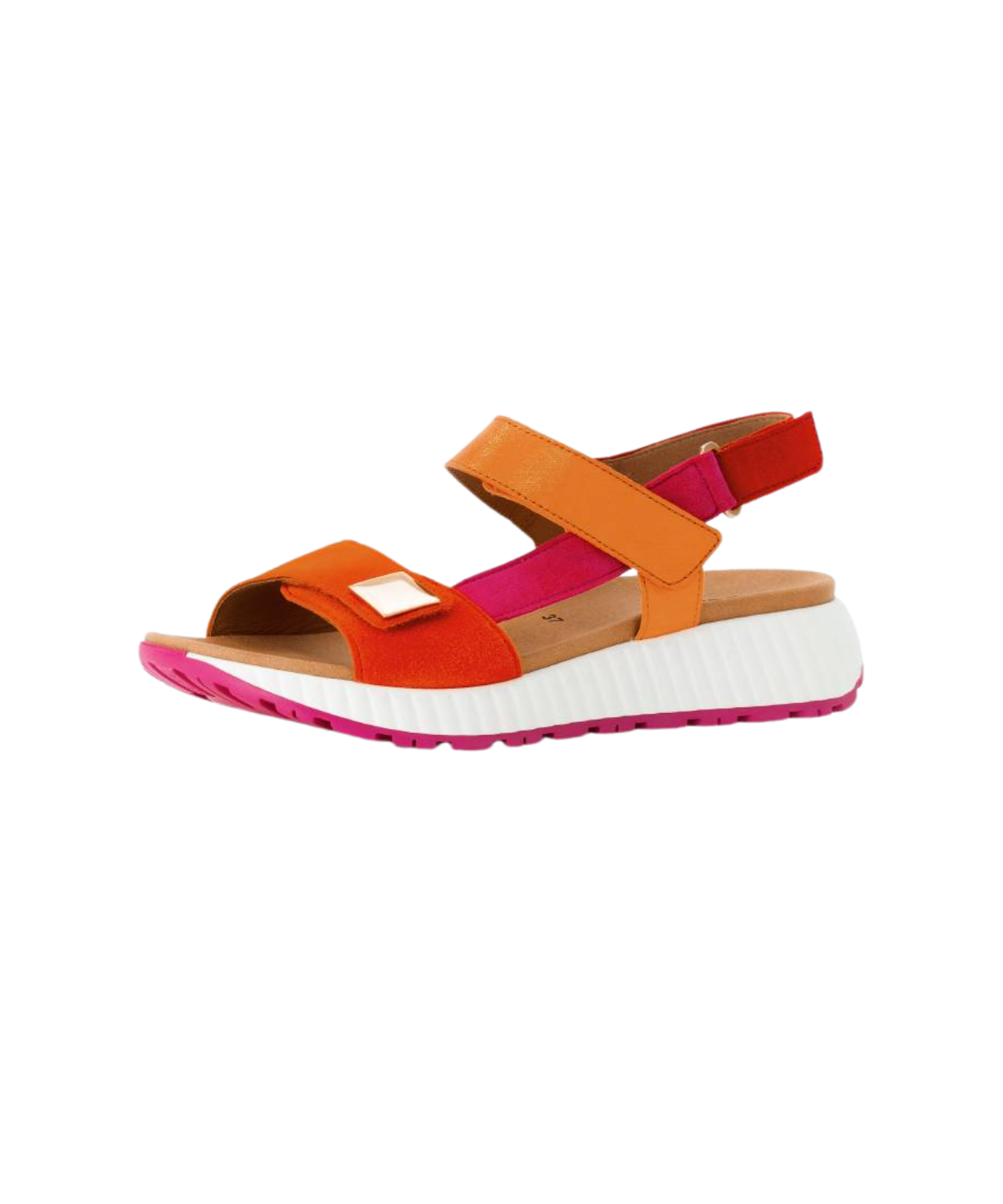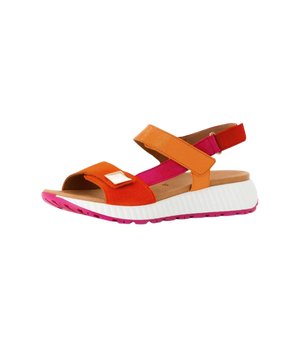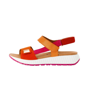 Gabor sandal dame – artikelnummer 84.582.33 – er det perfekte valg til dig, der ønsker både komfort, farve og stil i én og samme sandal. Den smukke kombination af rød, gul og orange giver et frisk og sommerligt udtryk, som løfter ethvert outfit og tilfører garderoben et varmt, feminint touch.