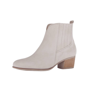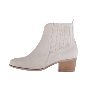 Støvlen er fremstillet i smukt lyst ruskind, som giver et feminint og moderne udtryk. Indvendigt er den foret med ægte læder, som sikrer god åndbarhed og høj komfort – selv efter mange timers brug.