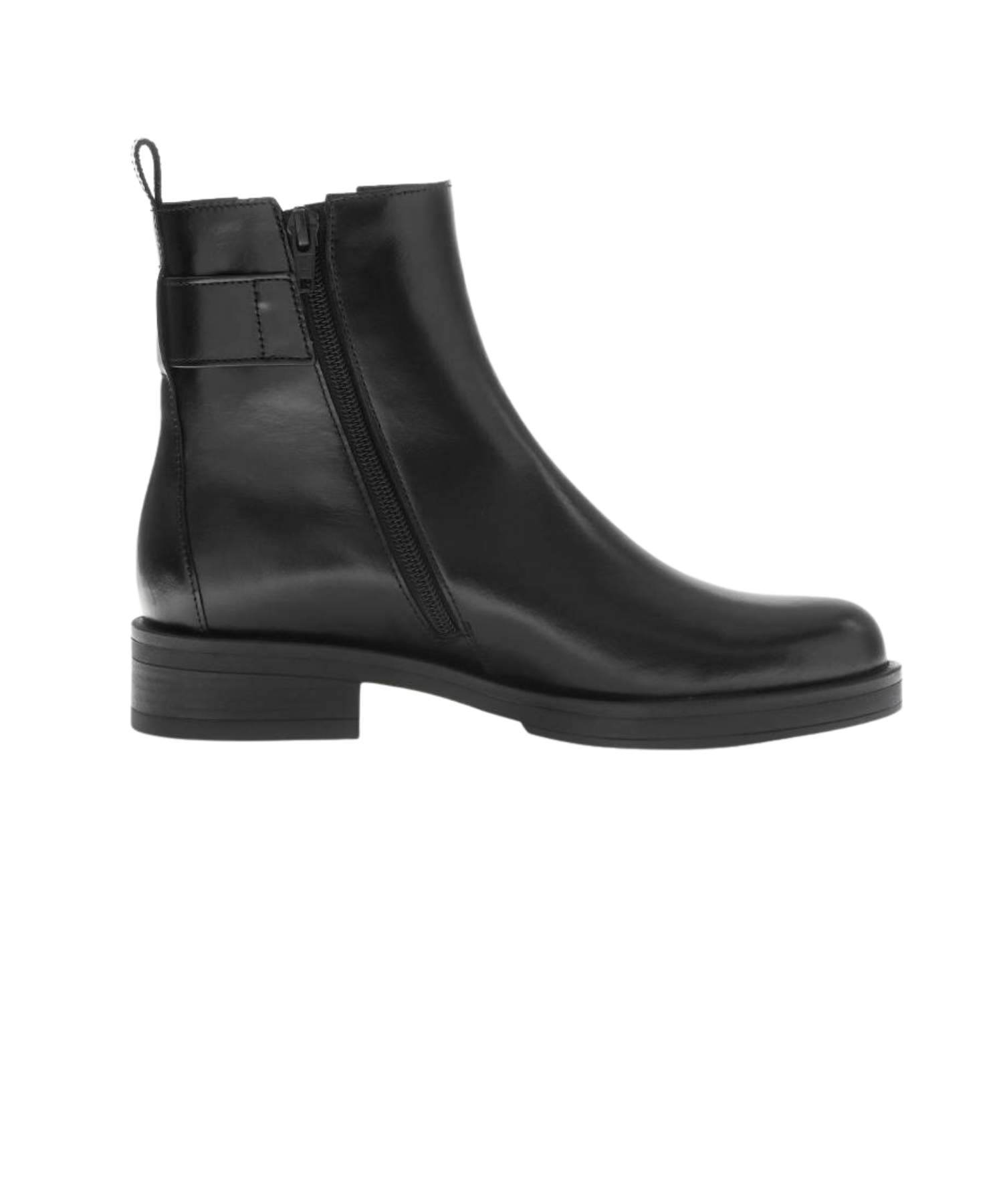 Det bløde sorte skind giver støvlen et eksklusivt look, mens den let spidse snude og den smalle silhuet skaber et moderne udtryk. Den dekorative rem med metalspænde tilfører et feminint og raffineret touch, hvilket gør støvlen nem at style til både kjoler, nederdele og jeans.