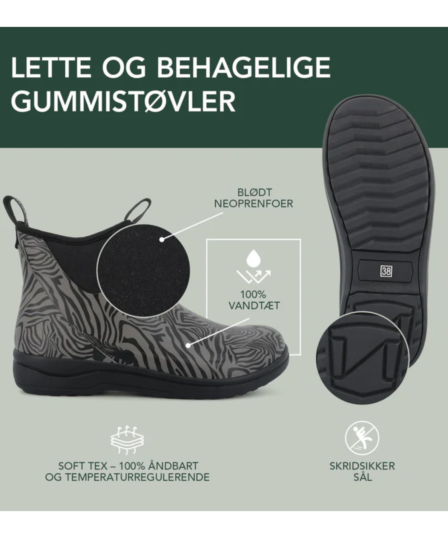 Resultatet er en gummistøvle, der føles let, fleksibel og behagelig – perfekt til både hverdagsbrug og længere ture.