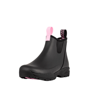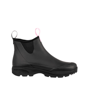 Denne særlige kollektion er skabt med kærlighed og omsorg. De sorte gummistøvler er designet med Støt Brysternes ikoniske lyserøde farve, som smukt pryder bunden og sløjfen på stroppen. Resultatet er et par elegante gummistøvler til damer, hvor mode møder mening.
