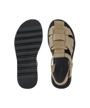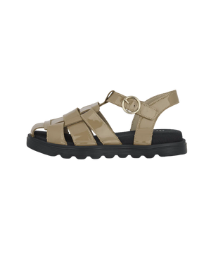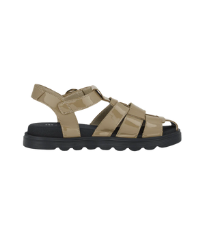 Sandalen er fremstillet i et smukt mix af kvalitetsmaterialer. Den elegante skindbase med lak-folie tilfører et moderne og eksklusivt udtryk, mens det bløde Soft Tex foer sikrer en behagelig fornemmelse mod huden.