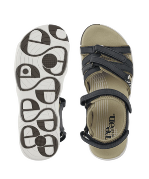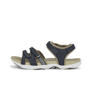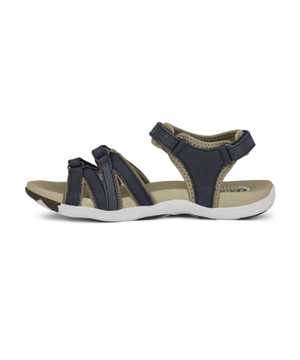 Sandalen har smalle, justerbare velcroremme, som gør det nemt at tilpasse den præcis til din fod. Med den unikke 4 mm EnergySole™ indersål og ekstra 4 mm stødabsorbering i hælen, får du optimal komfort og smertefri gang – hele dagen. Indersiden er foret med elastisk lycra, og den fugtabsorberende Soft Tex sål forhindrer svedige fødder i sommervarmen.