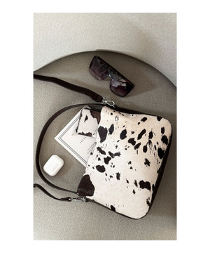 Opdag en eksklusiv taske fra vores COW-kollektion – skabt til den stilbevidste kvinde, der ønsker noget helt unikt. Denne håndmalede taske med ko print kombinerer moderne funktionalitet med naturlige materialer og en iøjnefaldende æstetik.
