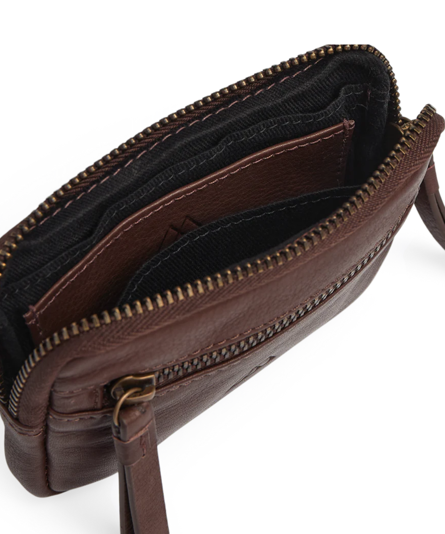 På forsiden finder du en praktisk lynlåslomme, perfekt til småmønter, nøgler eller andre småting, du gerne vil have hurtig adgang til. Indvendigt er der god plads til både kort og kontanter, så du nemt kan holde styr på dine vigtigste ejendele i hverdagen.