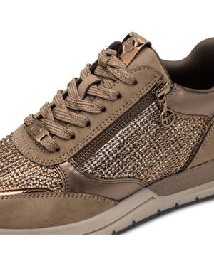 Opgrader din hverdag med Tamaris sneaker 1‑23832‑44‑963, også kendt som Copper Glam – en stilren og moderne damesneaker, der kombinerer komfort, funktion og et sofistikeret metallic-look. Med sin lave profil, bløde pasform og veganske materialer er denne sneaker det oplagte valg til både hverdagsbrug og afslappede outfits.