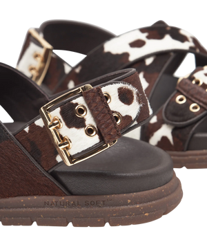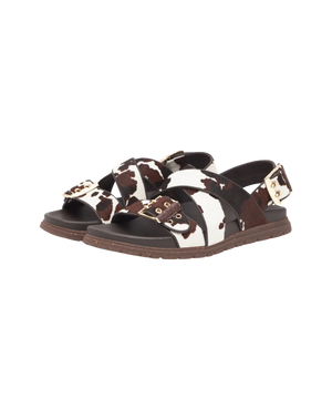 Woden - Dame sandal i cow print.